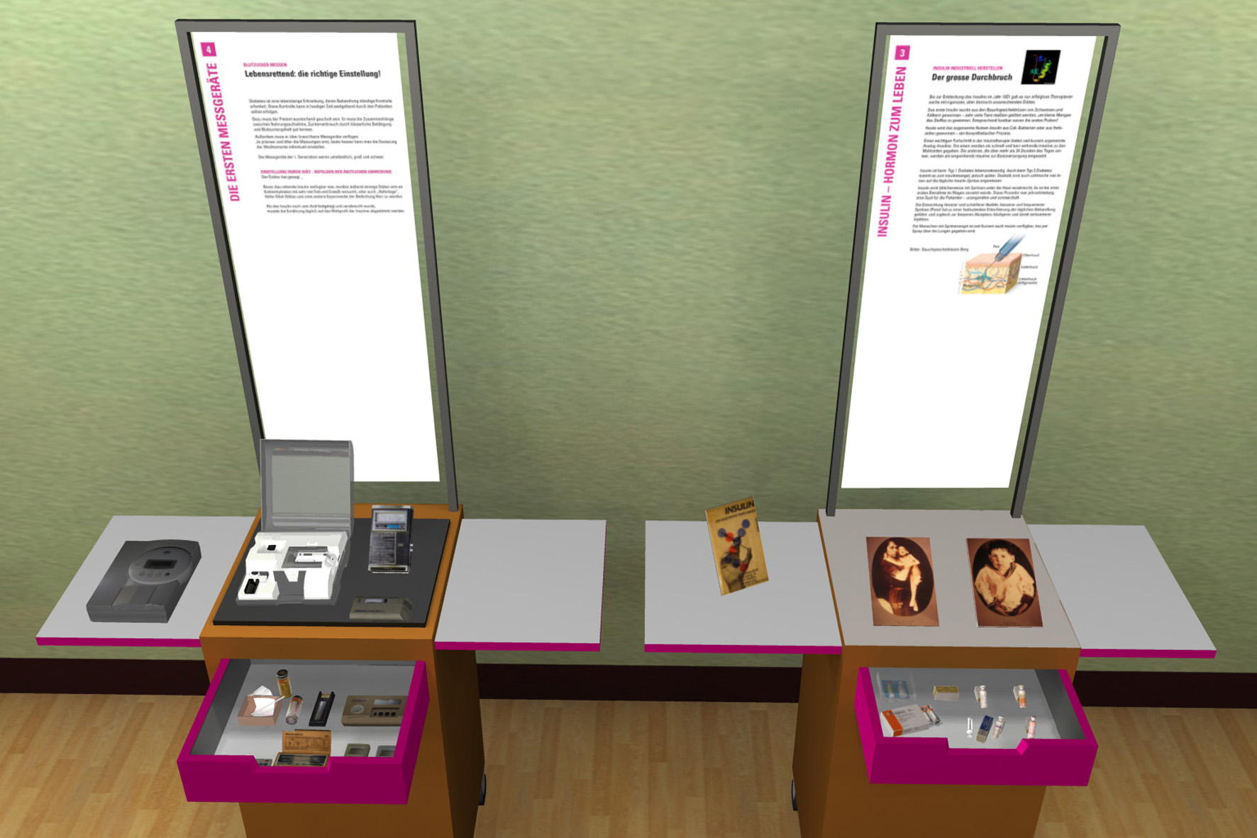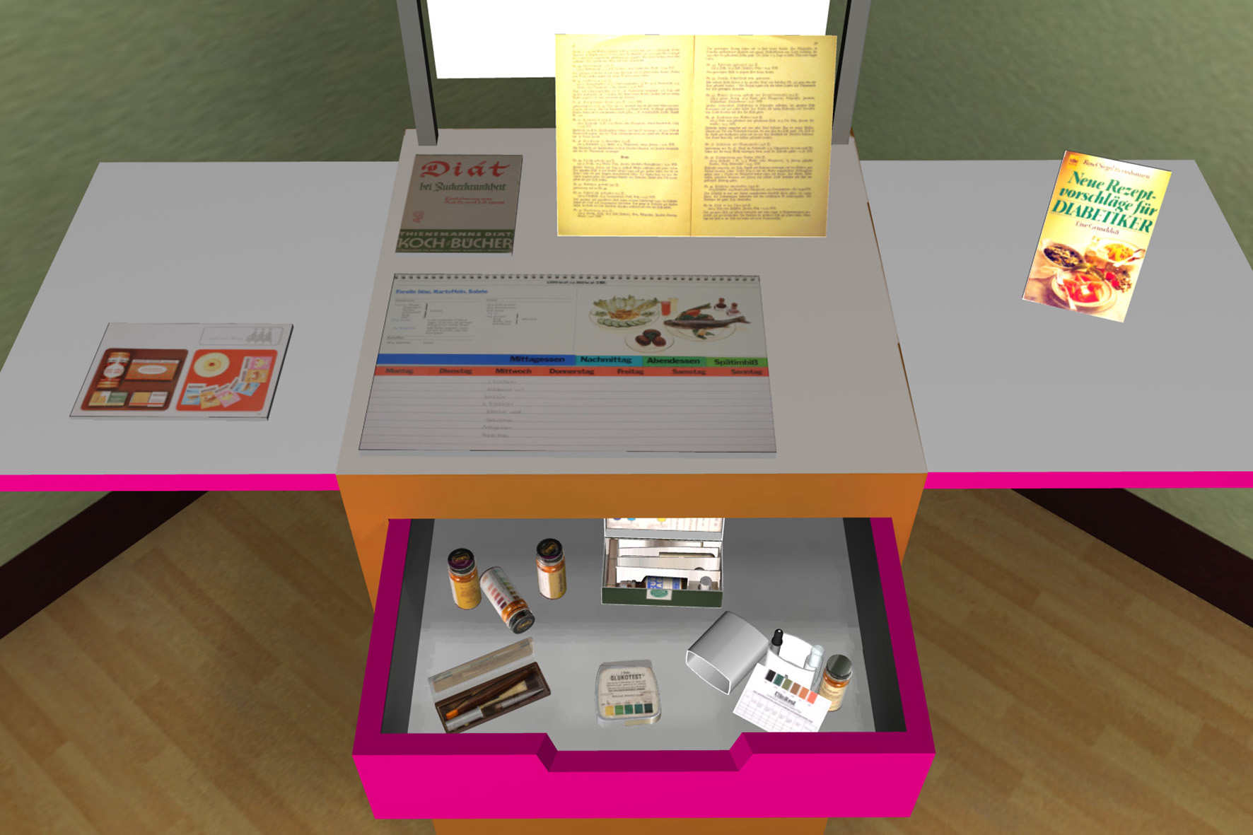Die sowohl dreidimensional wie konventionell begehbare Ausstellung beinhaltet sämtliche Exponate der Ausstellung, sowie ein Simulationssystem für den Blutzuckerstoffwechsel und ein neuartiges interaktives Diabetes-Lexikon. Das Lexikon verknüpft die Elemente des realen Museums mit weiteren Informationen und basiert auf dem semantischen Netz ID MACS der Berliner Firma ID Information und Dokumentation im Gesundheitswesen GmbH, die das Projekt unterstützt. Mit der neugeschaffenen Wissens- und Informationsplattform will man viele verschiedene Benutzergruppen erreichen und auf das Thema aufmerksam machen, indem man sehr komplexe Begriffe veranschaulicht. Angesichts einer kontinuierlichen Zunahme der Erkrankungen, vor allem durch schlechte Ernährung und mangelnde Bewegung, soll ein Bewusstsein für eine gesunde Lebensweise geschaffen werden. Auch bereits Erkrankte sollen über den richtigen Umgang mit ihrer Krankheit informiert werden, da die Hälfte der Kosten für die Behandlung von Diabetes auf Folgeerkrankungen entfallen. Für Schüler im Alter von 10 bis 14 Jahren ist auch ein Quiz integriert. |